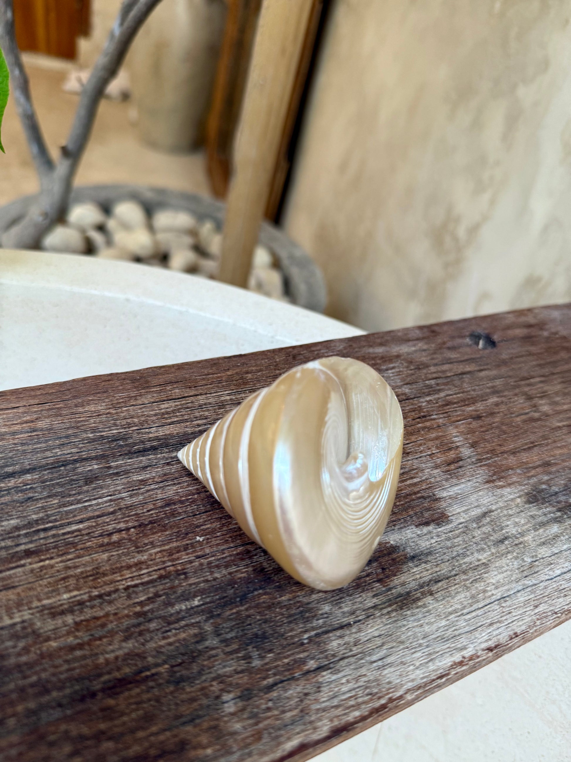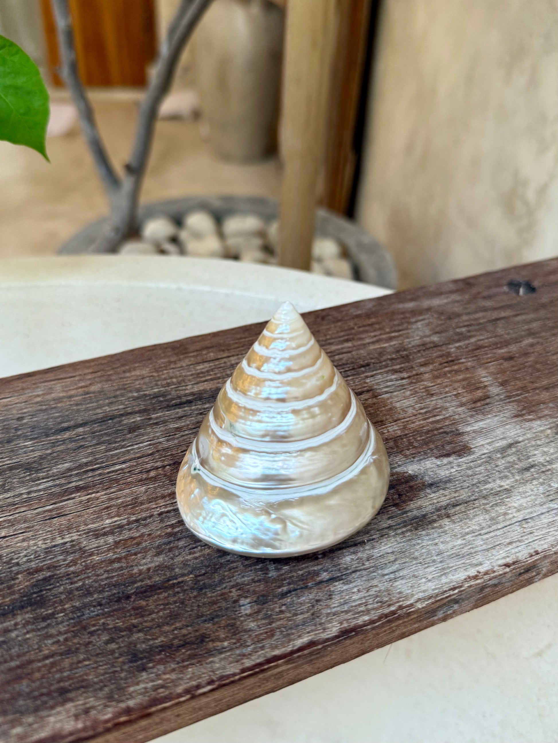 Sa forme conique et régulière rappelle les trésors des plages balinaises et en fait un élément décoratif raffiné à disposer sur une console, une étagère ou au centre d’une composition marine.