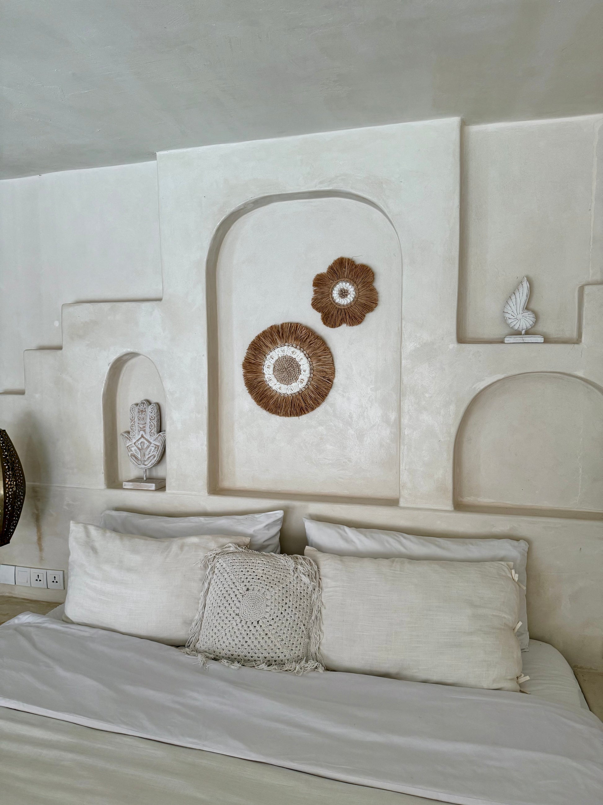 Apportez une touche naturelle et élégante à votre intérieur avec cette superbe décoration murale ronde, entièrement faite à la main à Bali, dans la région d’Ubud.