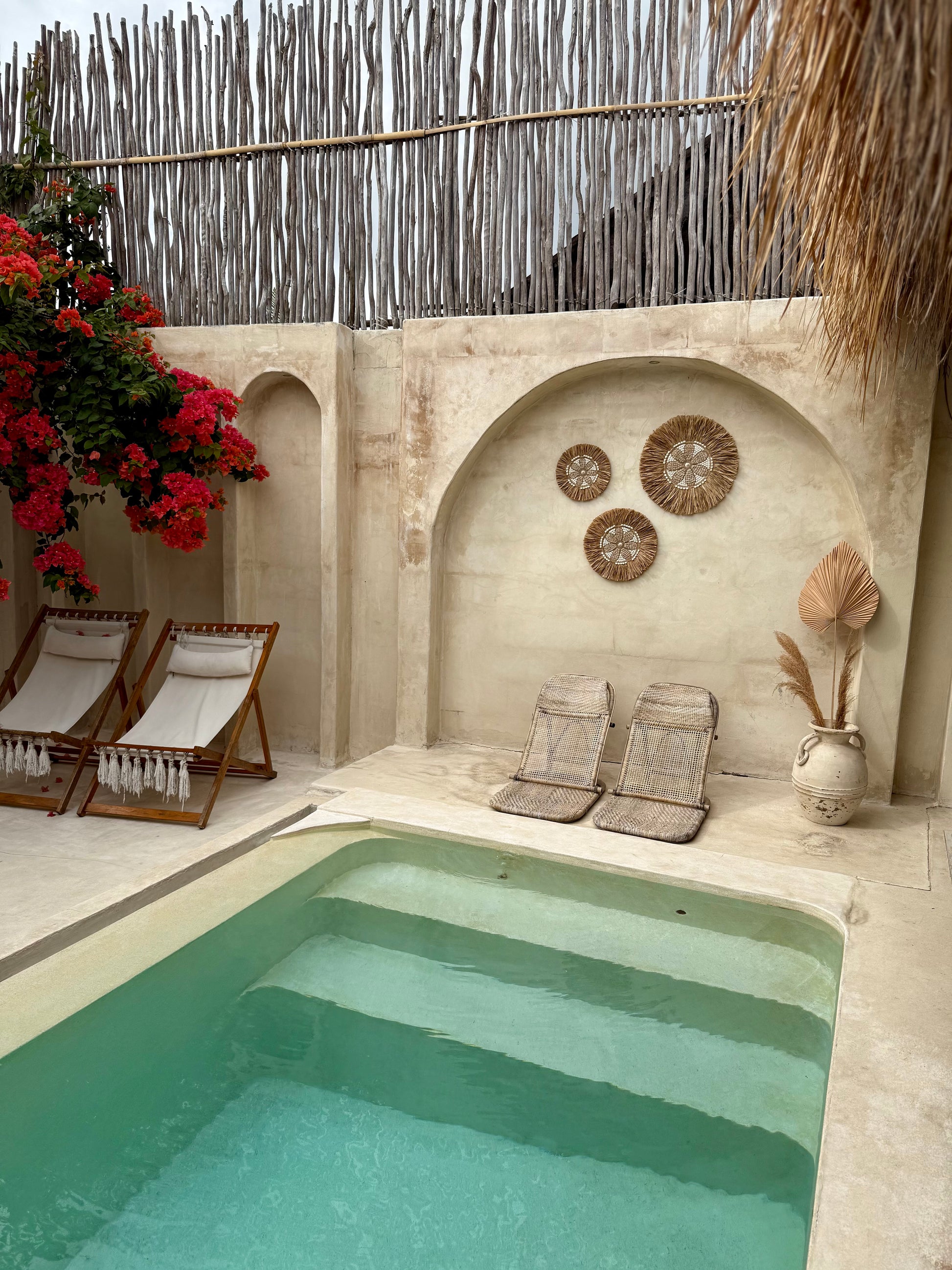 Le tout est entouré de franges en plantes aquatiques séchées, qui ajoutent du volume et de la texture, pour une finition à l’esprit bohème et exotique.